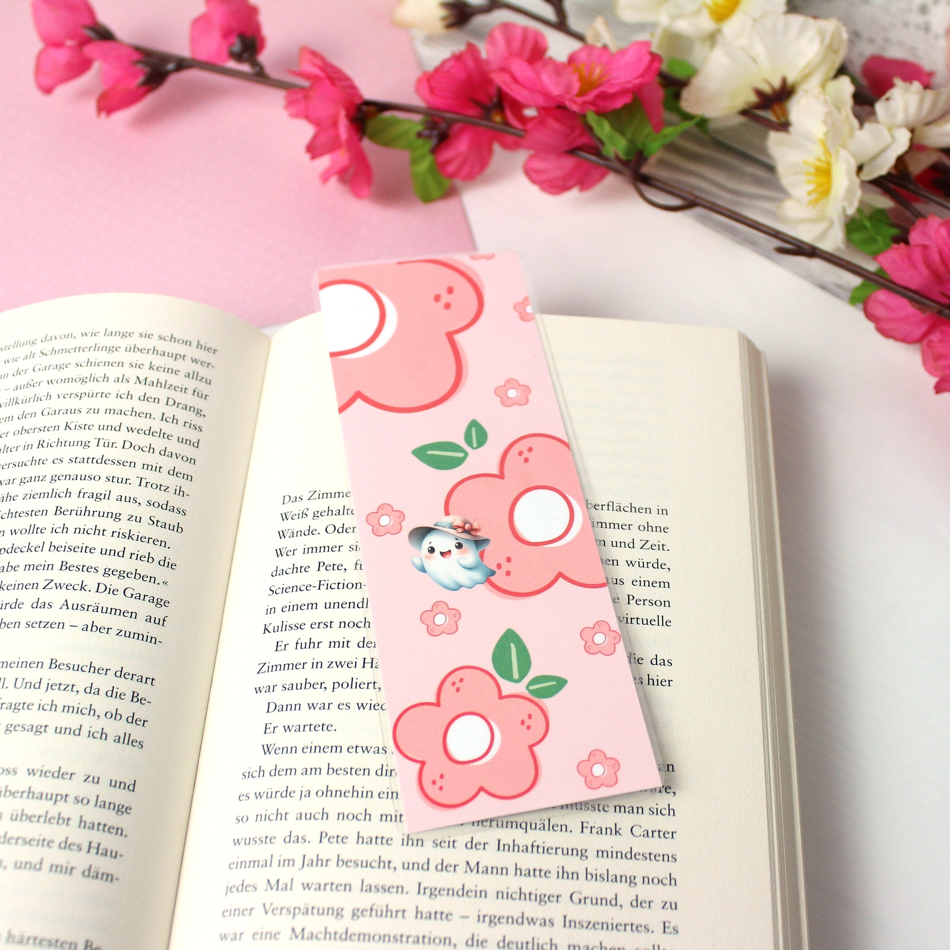 Unverzichtbares Accessoire für Bücherliebhaber: Handgefertigtes Lesezeichen mit Geistern und Blumen
