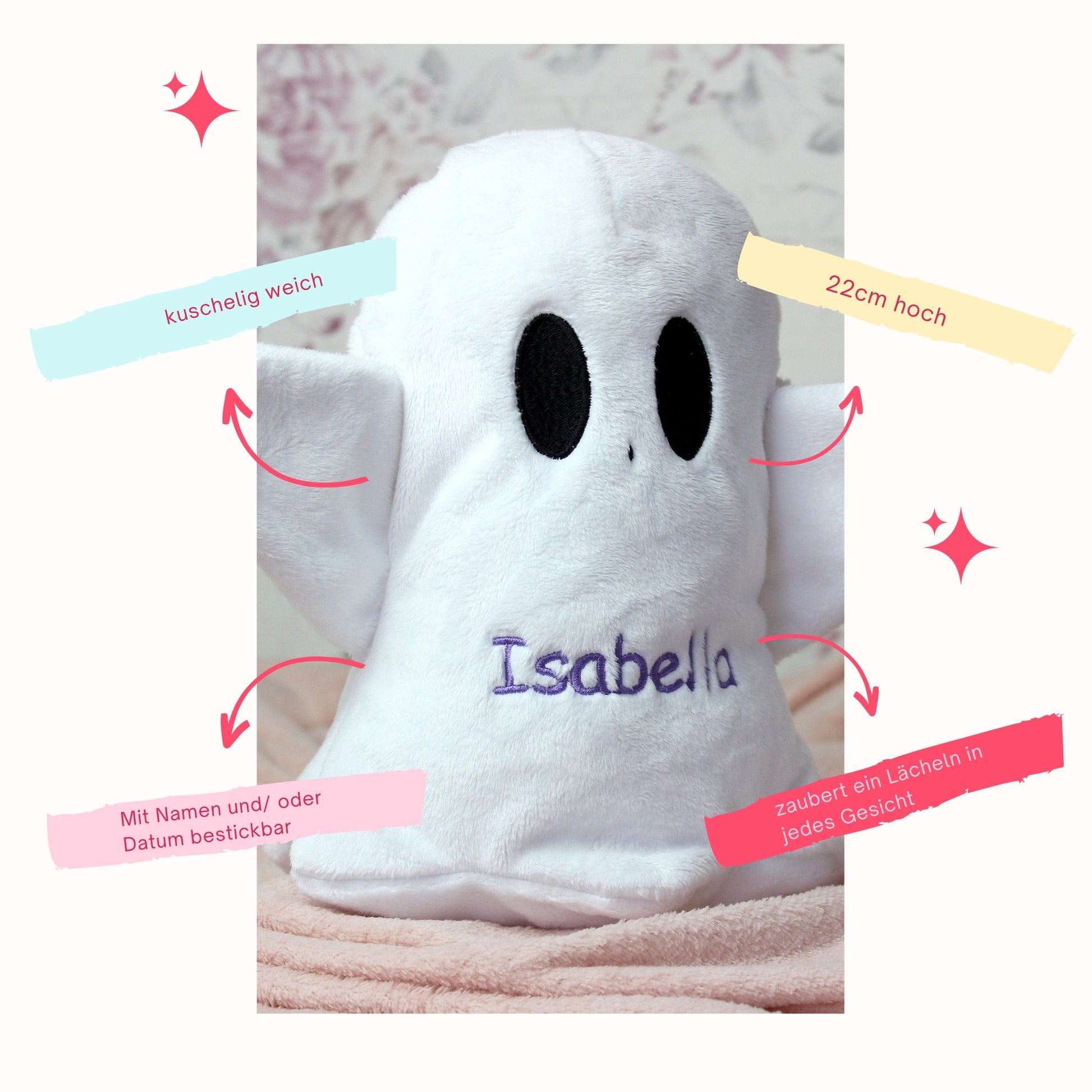 Personalisiertes Geist Kuscheltier - süßes Geist Plüschtier mit Text und Datum bestickbar